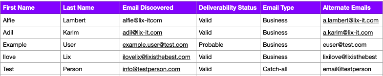Also, it's important to note that you'll only ever be charged for emails marked Valid - Probable emails are free.